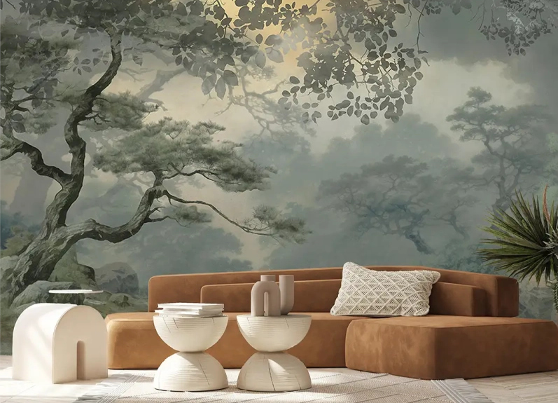 La tendance est aux fresques murales et aux trompe-l’oeil, profitez en pour faire « tomber » les murs avec une thématique sur la nature par exemple