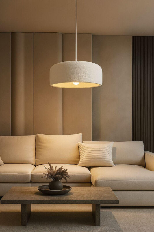 Les luminaires sont des éléments de décoration et d’ambiance importants. Dans le cas présent, privilégiez les suspensions basses, notamment au salon où une lumière douce sera appréciée.