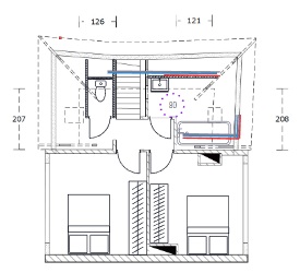 - Pour ne plus faire de la cuisine un lieu de circulation et d’isoler le coin nuit, l’entrée coté couloir est condamnée.